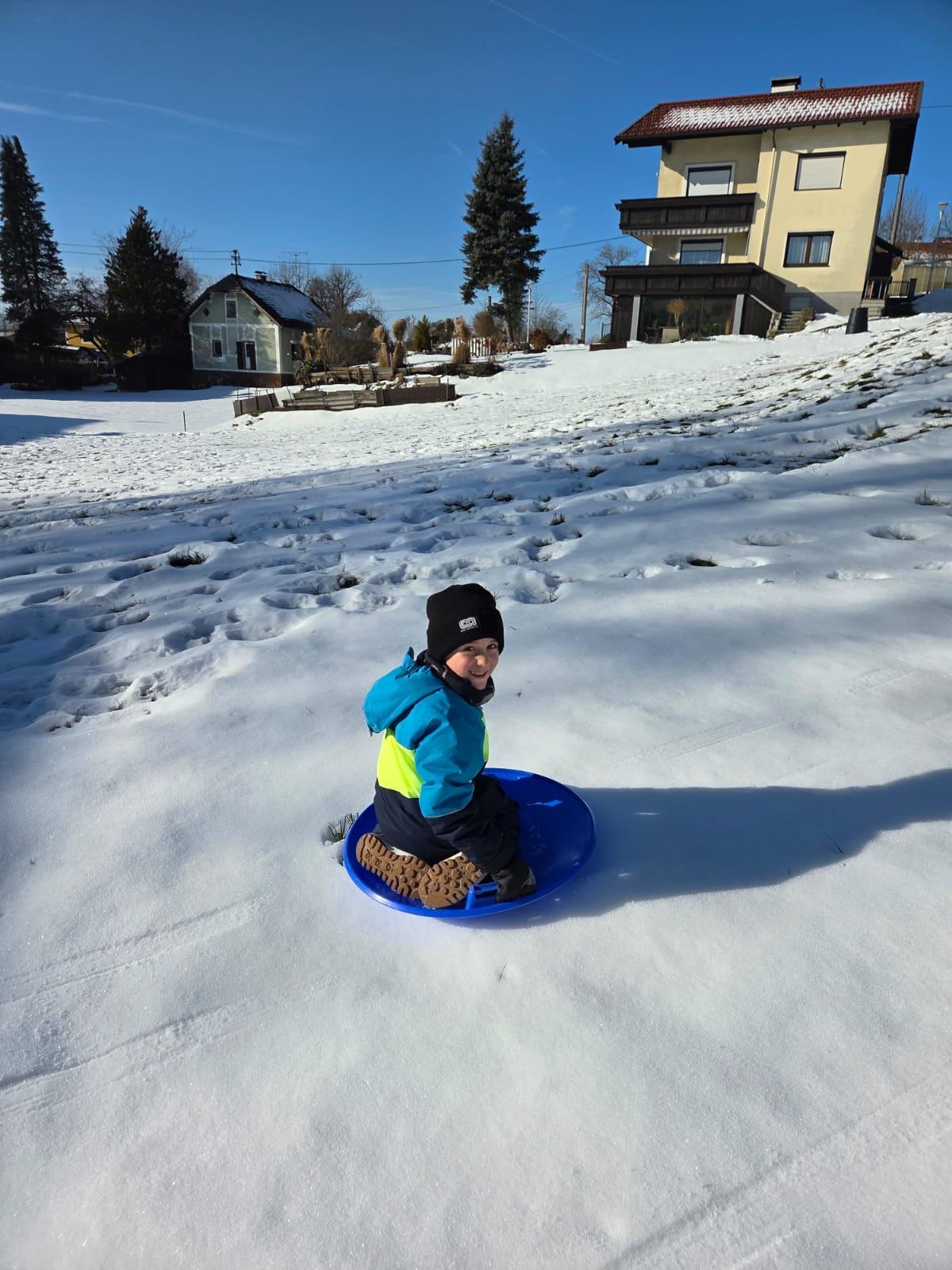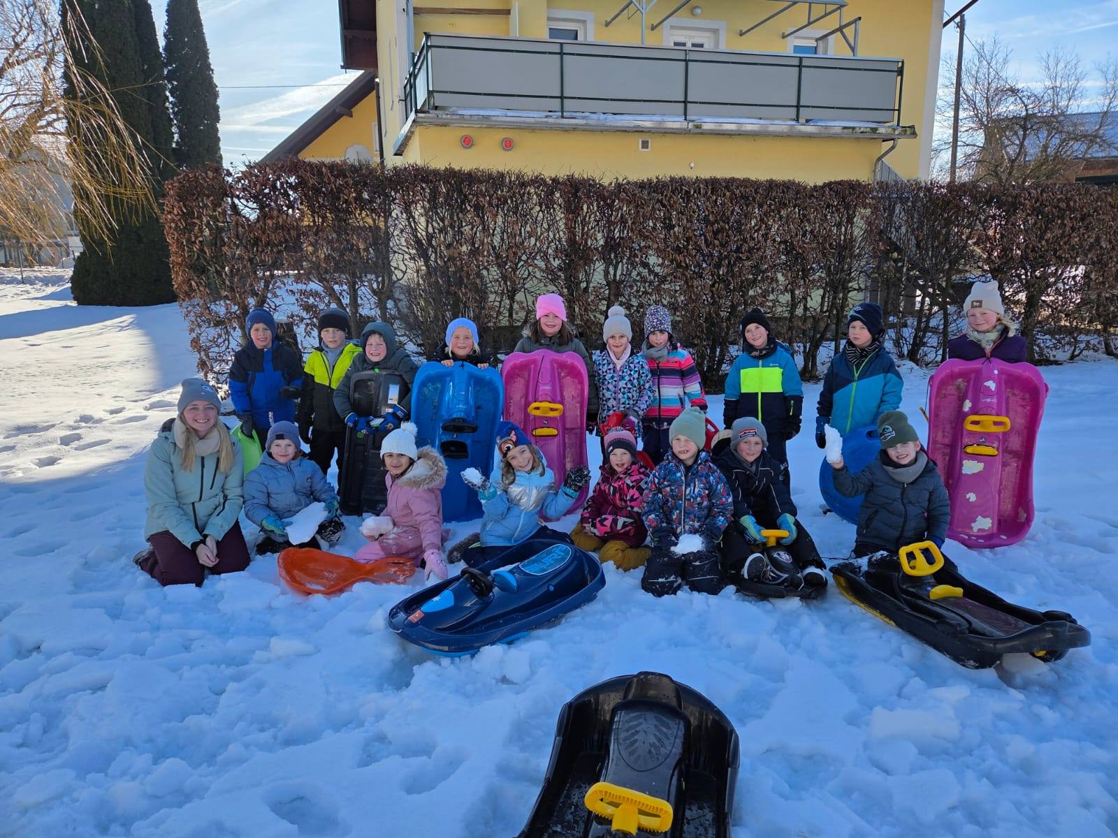 Endlich Schnee, endlich Bob fahren - diese Gelegenheit konnten wir uns nicht entgehen lassen. Mit Rutschtellern und Bobs hatten wir eine Riesengaudi wie man sehen kann.