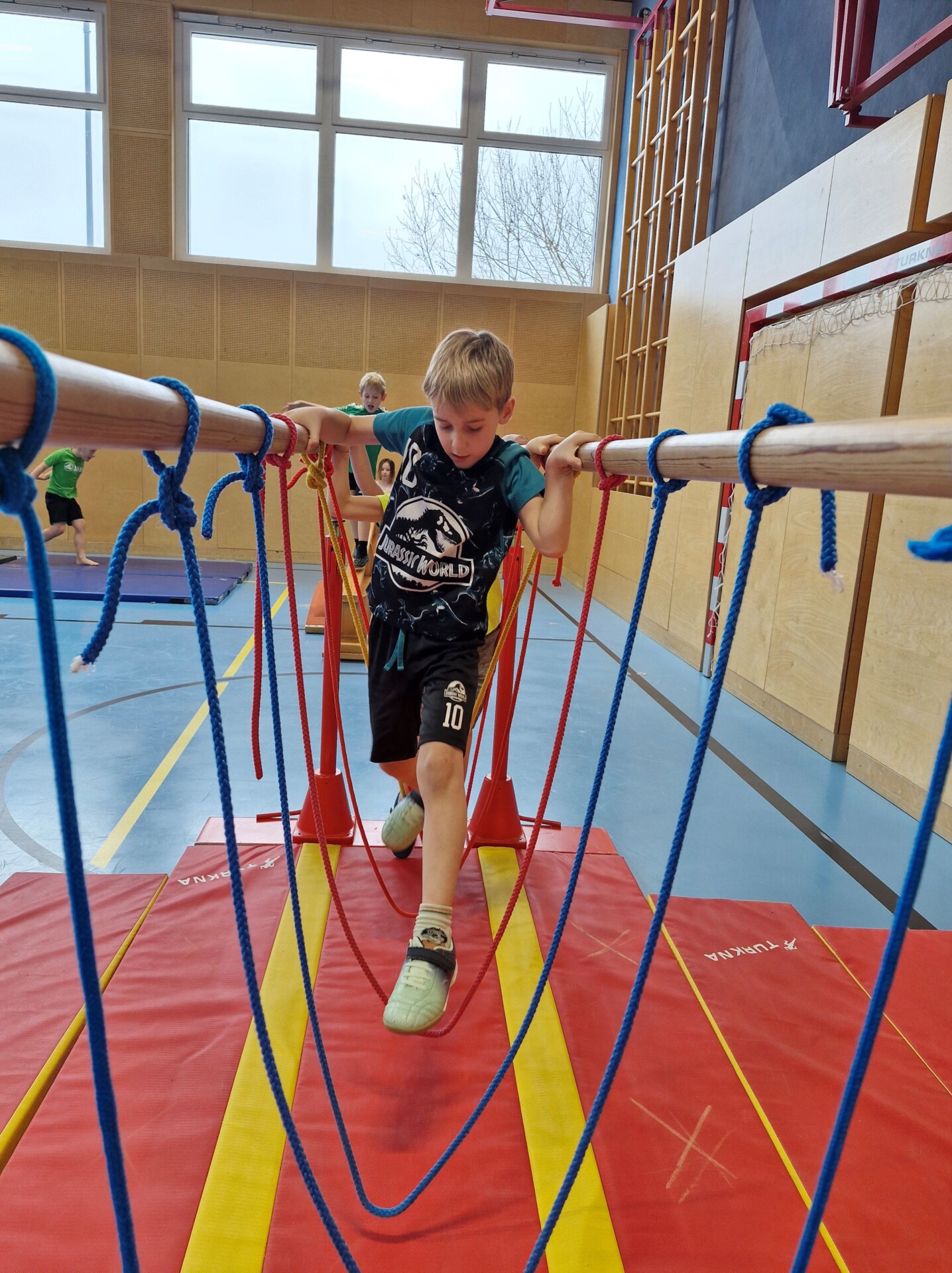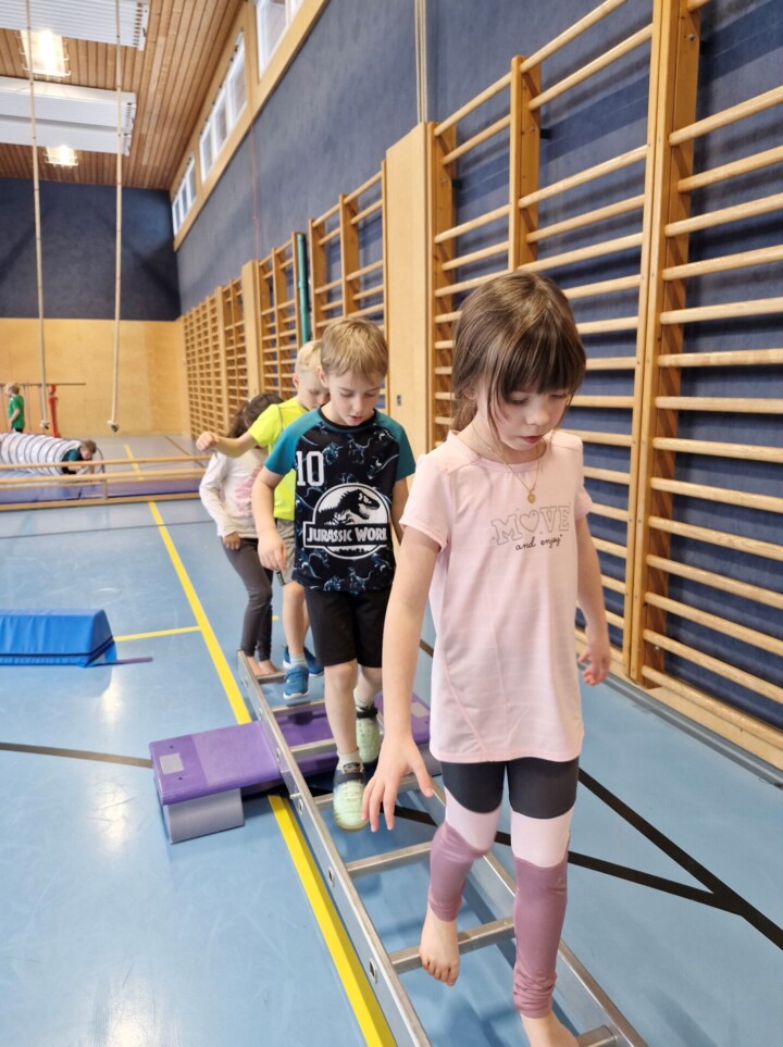 Jeden Mittwoch werden an unserer Schule Stationen für die Turnstunden aller Klassen aufgebaut. Balancieren, springen, laufen, Geräte turnen und vieles mehr werden trainiert. Hier bekommt ihr ein paar Einblicke der 1a Klasse.
